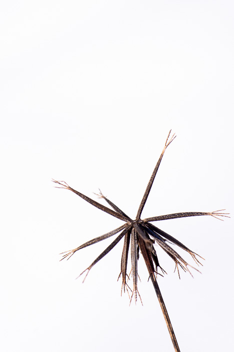 Snow whirls around each stem in